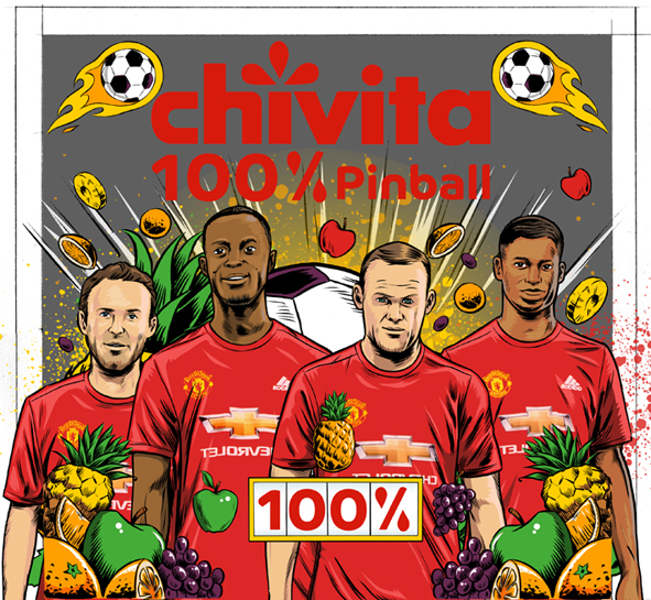 Back in January, I worked on a commercial starring several Manchester United football players. The ad was for international fruit juice brand Chivita and the post-production company I worked with were Bark & Bite (Manchester). In the advert, the players (Wayne Rooney, Juan Mata, Marcus Rashford and Eric Bertrand Bailly), drink some juice before gathering round a Chivita themed pinball machine "Chivita, 100% Pinball" as the illuminated backboard says. See the video here...